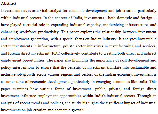 The Role of Investment in Employment Opportunities with Special Reference to Indian Industry