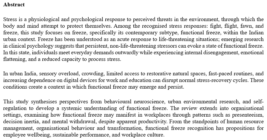 Functional Freeze in Urban India: An Integrative Literature Review of Stress, Environment and Workplace Experience