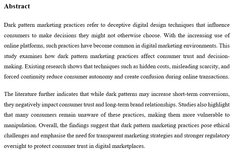 Dark Pattern Marketing Practices and their Impact on Consumer Trust and Decision-Making
